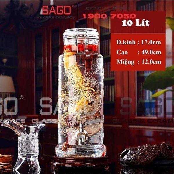 Mua Bình Thủy Tinh Ngâm Rượu 10L Có Vòi Từ Gốm Sứ Thủy Tinh Sài Gòn