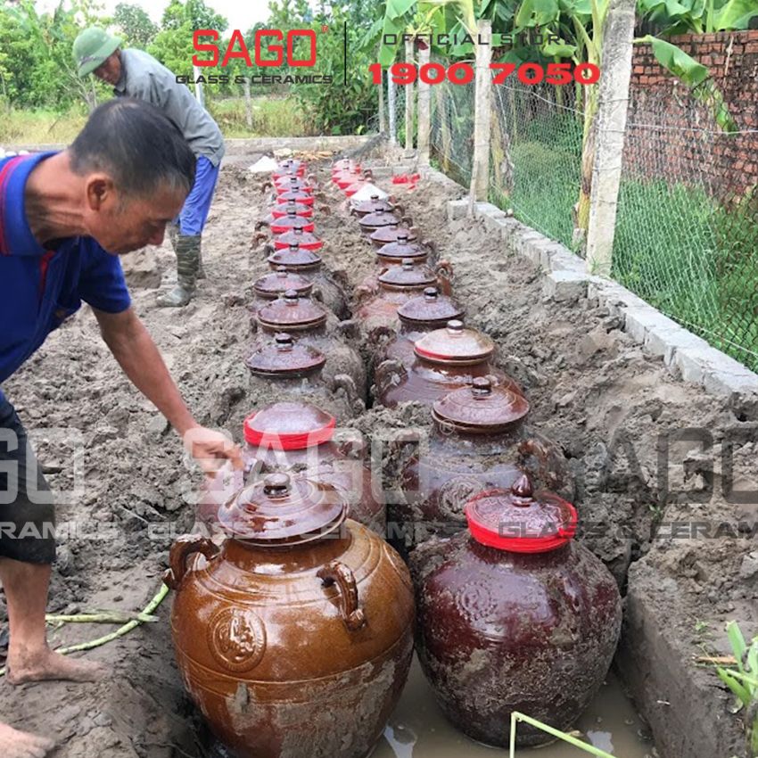 - Do đặc tính của Chum Sành do Gốm Sứ Thủy Tinh Sài Gòn Cung Cấp là không tráng men, thành chum tuy cứng chắc nhưng lại có độ xốp nhất định. Các chất độc trong rượu như Aldehit… có thể tự thẩm thấu ra ngoài qua thành chum trong quá trình làm mềm rượu. Giúp đẩy nhanh quá trình phân hóa loại bỏ tạp chất làm trơn tròn hạt rượu. Đặc tính này không có trong các Chum Sành tráng men, các bình thủy tinh hay can nhựa…